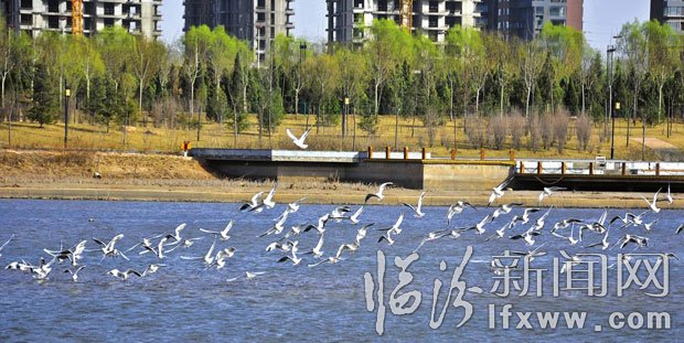 3月6日,在临汾汾河生态景区里,红嘴鸥展翅高飞,犹如白衣仙子。近年来,市委、市政府不断加大环境保护力度,使得生态环境明显改善。 据市林业局野生动物保护站张站长介绍,这种鸟为红嘴鸥,俗称“水鸽子”,体型大小与鸽子相似。红色的小嘴扁扁的,尖端呈黑褐色,身体大部分为白色,尾羽为黑色。红嘴鸥一般生活在江河、湖泊、水库、海湾,繁殖于中国西北部的天山西部地区及东北部的湿地。