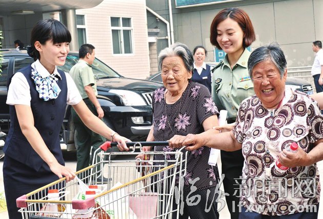 8月1日,尧都农商行广场支行员工来到临汾军分区干休所,和老军人及遗孀们拉家常并送去慰问品。 张贵香老人高兴地说:“我们平常交话费、电费,存钱、取钱享受到了亲情服务,远亲不如近邻啊!”本报记者 李虎威 摄