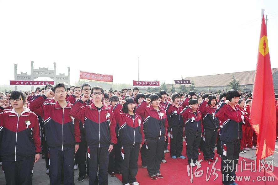 4月3日,浮山县广大干部、群众、师生怀着崇敬的心情,来到县烈士陵园进行清明节扫墓活动,深切悼念革命先烈,祭奠革命烈士,缅怀不朽功勋,并依次瞻仰烈士纪念碑,参观了国防教育基地。图为该县学生代表向烈士敬献花圈。 许亚峰 摄