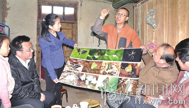 4月5日,徐胤在安泽县自己的乡村工作摄影室向来访者展示摄影生态作品。为了用镜头记录当地的生物多样性,向世人展示美丽安泽的自然风貌,他辞去了在北京的工作,返回家乡拍摄当地丰富的野生动植物。为抓拍到这些精彩的瞬间,徐胤踏遍安泽的山山水水,常常独自一人吃住在大山里。正是他这种坚持不懈的付出,终于积累了上千幅精美的生态图片,丰富和弥补了当地图片库的空白。(记者 刘临喜 摄)