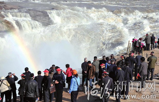 4月29日,众多游客在吉县黄河壶口瀑布景区游览观瀑。 “五一”小长假期间,吉县黄河壶口瀑布再掀旅游热潮,前来壶口瀑布观光的游客络绎不绝。 吕桂明 摄