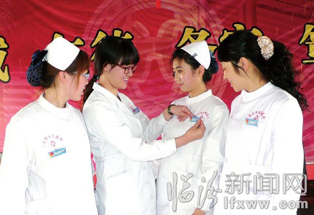 日前,侯马团市委在侯马人民医院举办了“青年爱心岗”授牌仪式,号召医院护士立志当好爱心使者和精神文明的传播者,全心服务患者。图为该院青年护士正在佩戴“青年爱心岗”胸章。