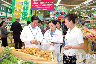5月8日,市农产品质量安全检验监测中心检测人员正在对生姜进行采样。山东潍坊使用剧毒农药“神农丹”生产生姜事件引起了广大消费者的关注,为让消费者吃得放心,市农委立即在全市展开专项抽检检测工作,加大对超市、批发市场、农贸市场所售生姜检测的力度,确保农产品质量安全。