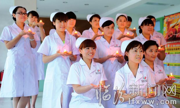 5月9日,市中西医结合医院的护理人员在参加点红烛仪式,以此迎接护士节到来。白衣天使们手捧红烛,重温南丁格尔护理精神,承诺争当爱心使者,为患者提供优质服务。记者 闫锐鹏 摄