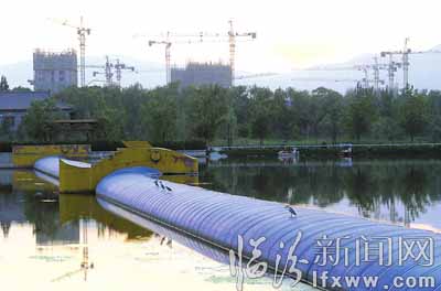 5月13日,夕阳照彩云,彩云映汾河。许多市民纷纷来到河岸观赏夕照汾河美景。而10余只灰色的夜鹭也静静地站在橡胶坝上观赏夕阳映汾河的景色,它们时而贴着水面飞翔,时而相互追逐。