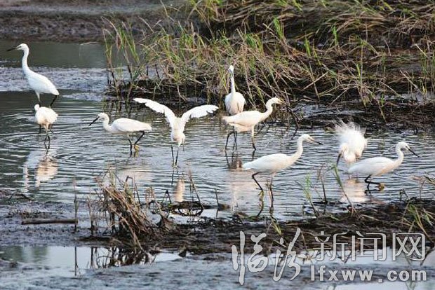近日,在尧都区涝洰河流域的湿地里,飞来了上百只白鹭、苍鹭、池鹭、夜鹭、黑鹳等鸟类。近年来,由于尧都区政府加大环境治理力度,新增了15.6公里长的河道和湿地,恢复了生态的平衡,吸引来了不少野生鸟类在此栖息。 张旦摄