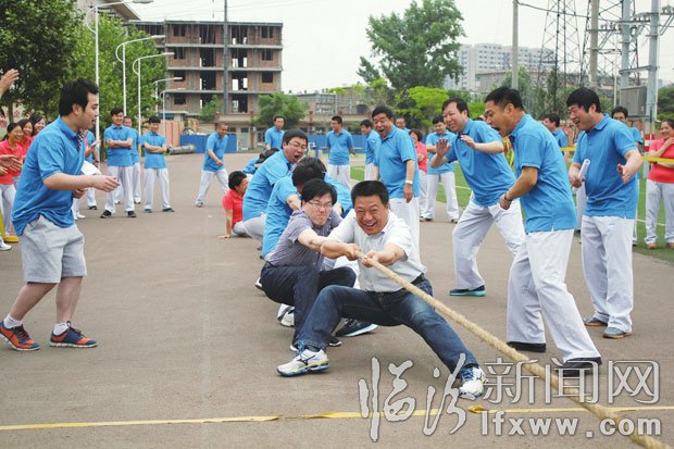 日前,临汾交通执法局举办了第二届职工运动会,共设拔河、乒乓球、羽毛球、篮球、跳绳、跳棋、象棋等九个比赛项目,二百余名运动员参加了比赛。图为职工在进行拔河比赛。