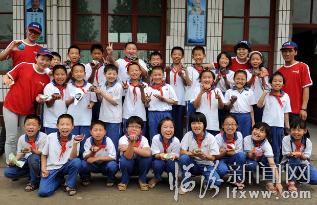 志愿者在为孩子们上音乐课(记者 闫锐鹏 摄)