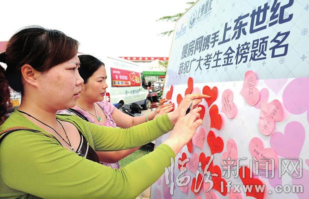 家长为孩子写下温馨的祝福。记者 闫锐鹏 摄