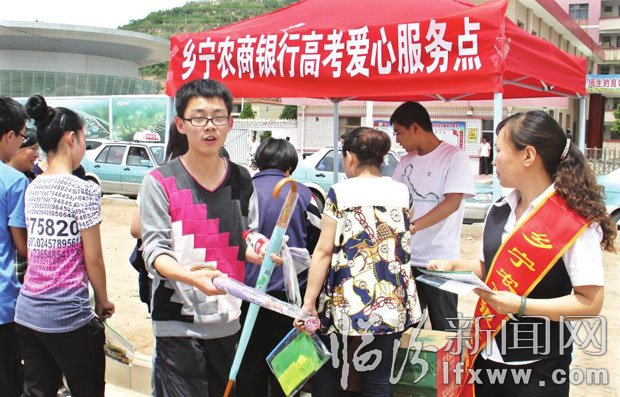 乡宁农商行工作人员设立爱心服务点服务考生。赵国良 周向峰 摄
