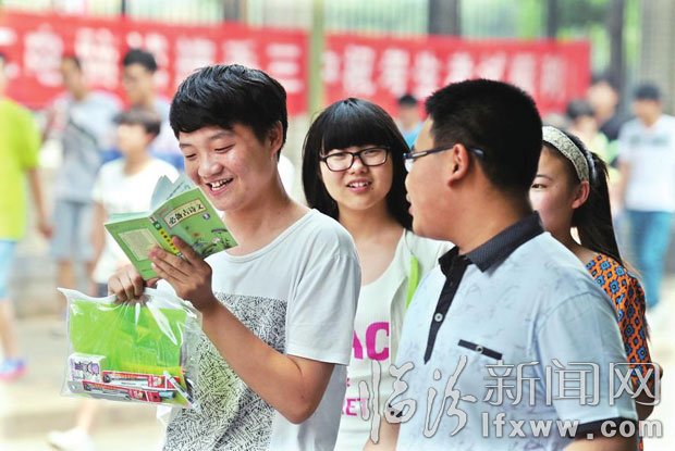 刚刚走出考场的一名考生在核对考试答案。记者 闫锐鹏 摄