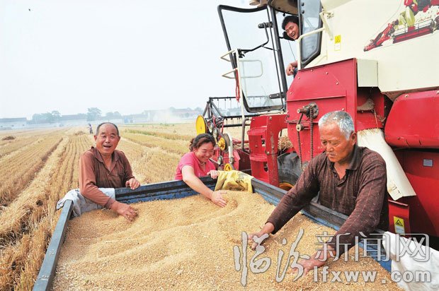 近日,曲沃县曲村镇修义村农民正在收获夏粮。该镇狠抓农田水利建设,使全镇1.2万余亩小麦变成水浇田,比往年旱地收成有了明显提高。刘红兵 摄
