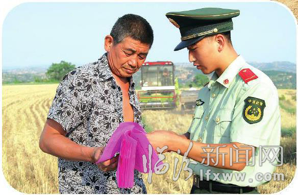 6月13日,浮山消防大队战士在天坛镇十里垣村麦田里宣传夏收消防常识。夏收开始以来,该大队消防官兵走乡村、进麦田,与农民“零距离”接触,深入宣传夏季麦收防火灭火常识,提醒广大农民朋友在收获喜悦的同时,务必加强防火措施,避免造成人员和财产损失。侯勇 摄