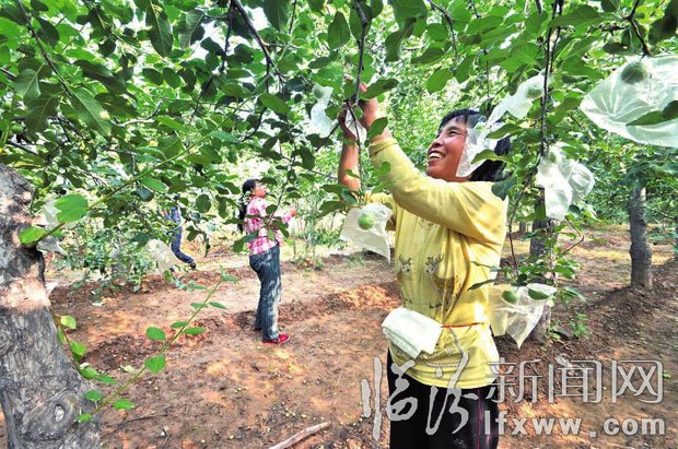 近日,翼城县南梁镇西王村果农在为苹果套膜袋。近年来,该县大力发展苹果产业,积极指导果农采用科学栽培管理技术,不断提高苹果质量,促进农民增收。
