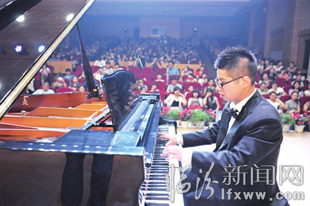 随着高校毕业季的到来,毕业生们展示自我的形式也多种多样,一些优秀的毕业生通过个人钢琴音乐会、演唱会以及个人毕业画展等形式,总结四年来的学习成果,向社会展示自我,搭建就业推荐平台。图为在山西师范大学毕业生严一彪钢琴独奏音乐会上,严一彪在倾情演奏经典曲目。本报记者 闫锐鹏 摄
