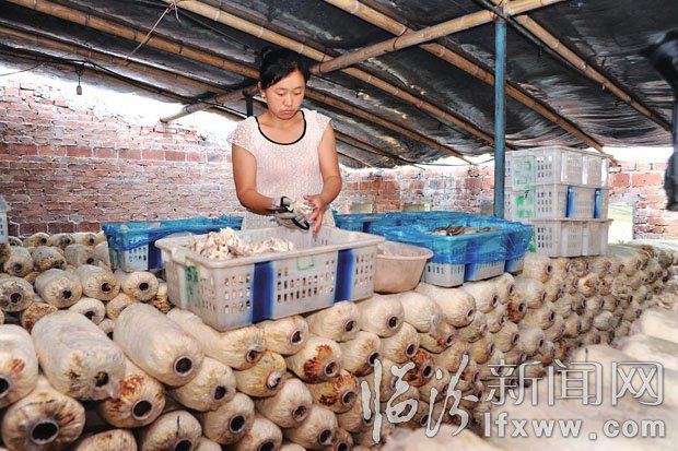 洪洞县南段农业科技种植专业合作社,采用“公司+合作社基地+农户”的帮扶生产模式,分三年总投资1000万元发展食用菌产业。目前,已建大棚108栋,接种室10座、灭菌池7座,冷藏保鲜库6座及培养发菌棚11栋。每个大棚食用菌的纯收益约在2.5万元左右,年总产值可达900万元,吸收劳动力200余人。图为工作人员正在采摘平菇。