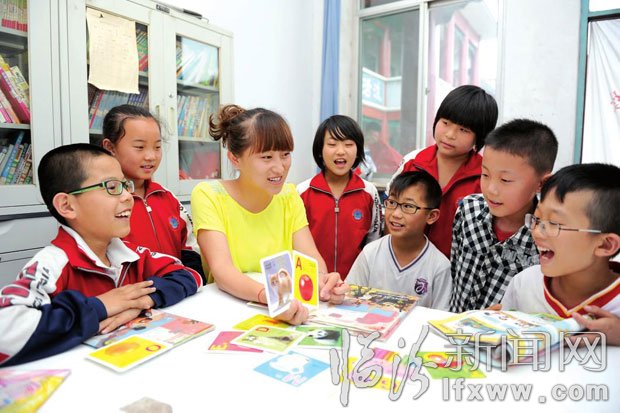近日,尧都区郭村小学的英语教师段珺在指导英语兴趣小组成员如何发音。该校在英语教学中科学地采用新思维教学,通过设立英语角和口语互动课,培养学生们的兴趣爱好,引导他们提升综合素质。