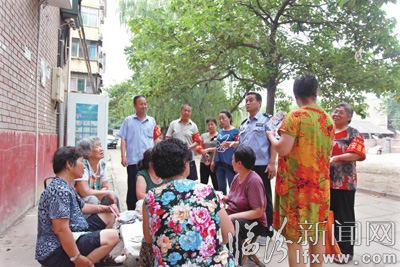 近日,尧都区公安局积极推进警务建设,通过警务前移、警力下沉深入基层,依靠治安积极分子、义务巡逻队等社会力量,实现了服务群众和打击犯罪能力的不断提升,使辖区群众的安全感和满意度不断提升。图为社区治安巡逻队向居民讲解安全防范知识。