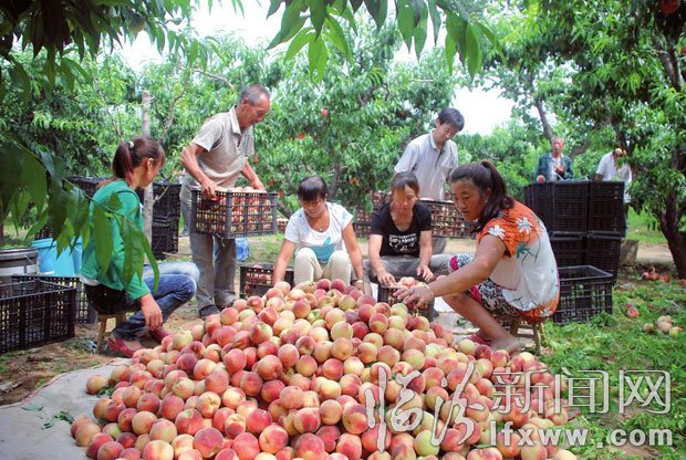 7月21日,在大宁县太德乡扶义村,村民正在忙着收获鲜桃。目前,该乡千亩桃园正值收获季节,到处都可以看到村民们忙碌的身影和丰收的喜悦,丰收带来的经济效益让太德乡的人民尝到了实实在在的甜头。