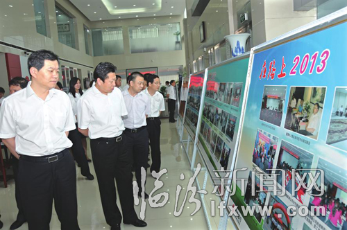 日前,临汾市银行业协会召开2012年“双十佳”文明规范服务经验交流暨2013年“双十佳”活动促进会。会上,部分受表彰的“双十佳”单位和个人作了经验交流,并对中国工商银行西城支行和晋商银行营业部的企业文化建设、对外窗口规范化服务及贵宾客户专属服务区进行了实地观摩。图为与会人员参观晋商银行工作成果展版。