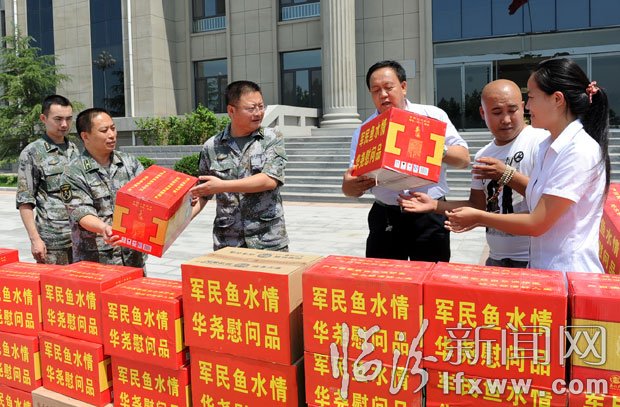 7月31日,在我市陆航驻临某部,华尧集团为部队官兵送去了“八一”慰问品。当日,我市华尧集团慰问了陆航驻临某部的部队官兵,为他们送去了夏日饮品和消暑用品,同时,华尧集团工作人员与部队官兵进行了座谈,建立“军民鱼水情”双拥共建联系单位,感谢他们为临汾转型跨越发展做出的努力。