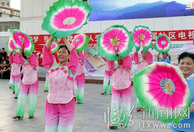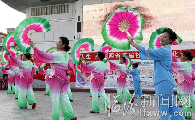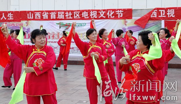 8月19日,在山西省首届社区电视文化节选拔赛上,临汾市选送的参赛队伍在表演舞蹈。当日,主题为“中国梦,我的梦,精彩我人生”山西省首届社区电视文化节临汾赛区选拔赛举行,来自全市的各个街道社区的16支代表队参加了选拔,旨在通过文艺交流,全力推进社区文化的蓬勃发展。 记者 闫锐鹏 实习生 张荣 摄