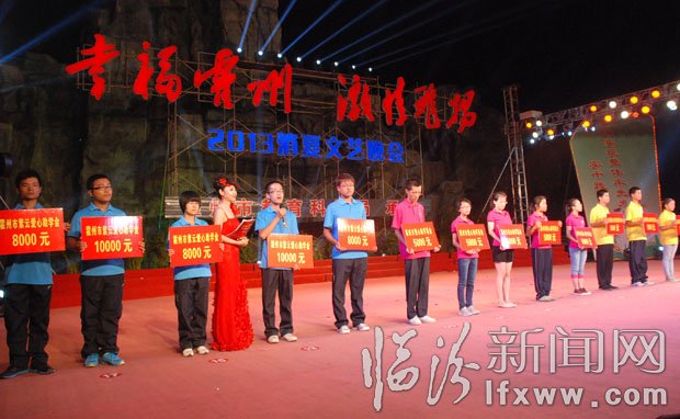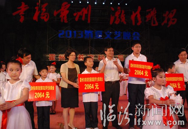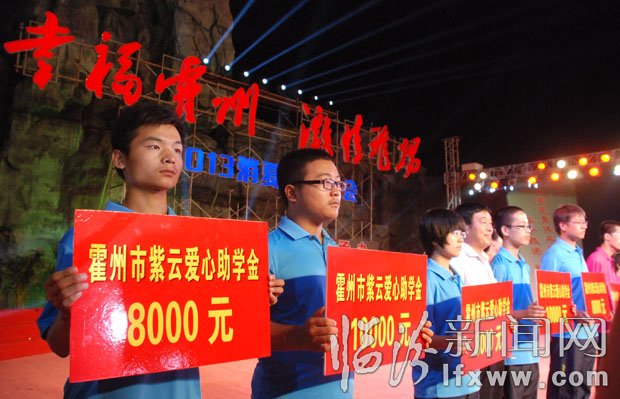 8月20日晚,在霍州中镇文化广场由霍州市委市政府主办的“幸福霍州,激情飞扬”2013消夏文艺晚会教育科技局专场中,该市爱心企业、领导干部、各届群众、社会爱心助学基金等纷纷为广大受助学生慷慨解囊,捐助爱心,形成爱心助学的良好氛围。如今,该市已连续举办五届爱心助学大会,累计资助学生9000余人,捐款捐物1000余万元。正如陈纲书记说的“要让每一个霍州藉的孩子都能上得起学,上得好学,上得完学。只要你有困难,我们要一直管到你大学毕业。”