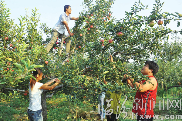 图为吉县下东村果园里,吉县新闻网络中心的党员爱心服务队正在帮助果农采摘苹果。