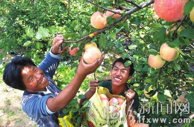 9月13日,尧都区大阳镇上阳村村民王春玲正在采摘苹果。上阳村统一规划果园,并对农民进行技术指导,全村3800亩耕地有3300亩种上了苹果,其中600亩早熟苹果在中秋节前全部上市,农民收入可观。