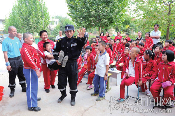 日前,在襄汾县新城镇闫店中心小学,中国蓝天救援队山西联络官李刚在指导学生防震自救逃生技能。当日,安利临汾分公司联合临汾市志愿者蓝天救援队在闫店中心小学举办了主题为“安全,开学第一课”关爱农村留守儿童活动,通过生动活泼的课堂实践和互动活动,为150余名师生上了一堂生动的安全知识课。
