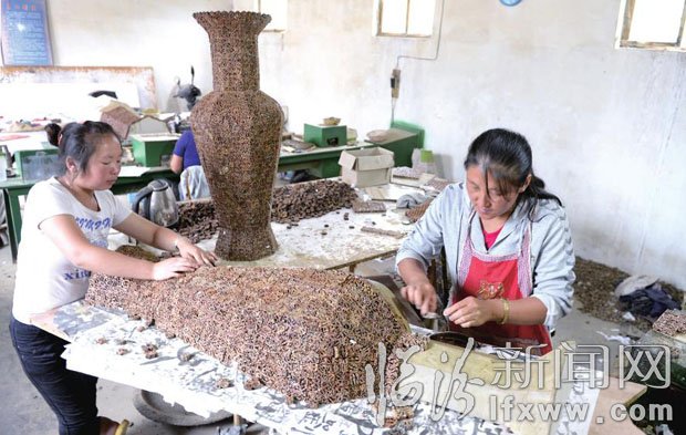 近日,隰县城南乡民间文化产业专业合作社,村民在加工山核桃工艺品。该合作社是一个集民间文化产业、文化产品、工艺美术品生产、制作、研发为一体的合作机构,产品涉及根雕、树皮字画、山核桃工艺品、刺绣等20多个类别200余个品种,先后带动当地农民150余人就业,以特色文化艺术带动经济的发展。 本报记者 闫锐鹏 摄