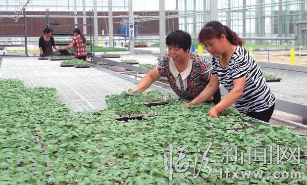 曲沃县太子滩万亩盐碱地治理一期工程共涉及2个乡镇、12个行政村、2000余户3500亩土地,由山西立恒钢铁股份有限公司投资8亿元,以租用方式流转土地进行连片治理。整个工程分为高科技智能温室区、有机农作物示范种植区、晋文化游览区等六个功能区,全部完工后将有力地带动当地百姓致富。图为日前该公司员工在高科技智能温室育苗区整理南瓜苗。