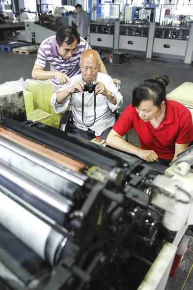 89岁的韩秉权老人在儿子的推扶下参加了现场拍摄。