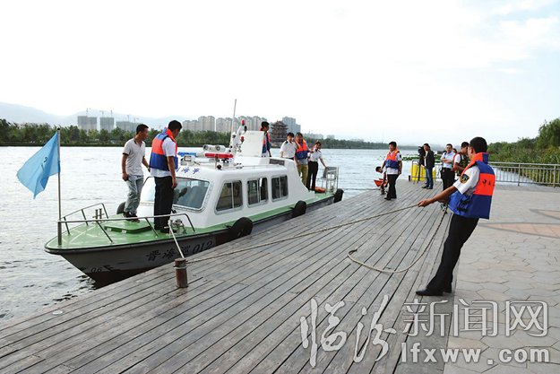 9月2日下午,我市汾河生态公园景区联合我市海事部门在汾河水域举行了一场突发事件水上应急救援演习,演习模拟有游客发生意外落入水中,景区工作人员发现后紧急施行水上救援,并成功救出落水游客。