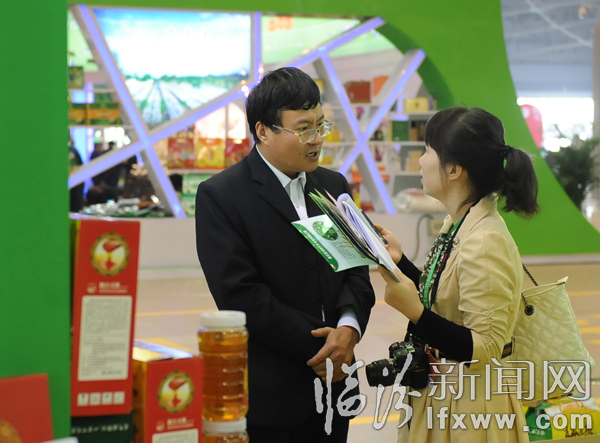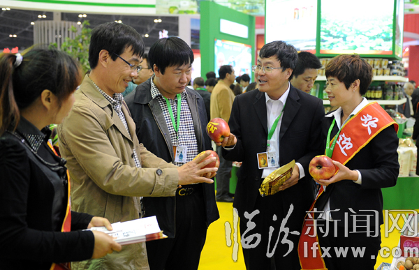 日前,在第三届中国(山西)特色农产品交易博览会上,寓意“绿色田园”和“黄色收获”的临汾展厅格外引人注目,500多平方米的展场摆满了临汾独具特色的农产品。吉县苹果、隰县香梨、永和红枣……这些特色优质农产品一亮相,就吸引了广大客商和太原市民的眼球。据了解,参加此次农博会的我市122家企业的488个品种的产品,以独特、新颖的展示和推介,让更多的采购商了解临汾产品、购买临汾产品,让临汾产品走向更广阔的市场。