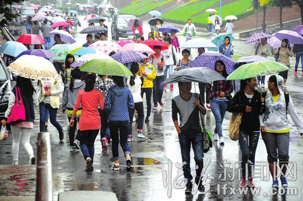 9月14日,我市迎来雨水降温天气,不少出行市民都穿上了长袖衣衫。