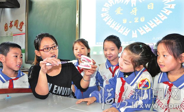 当日下午,记者在该校一年级三班教室里看到,学生们正在认真聆听班主任贾婵媛老师讲解保护牙齿的相关知识。