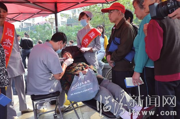 9月20日,临汾胜杰齿科医院在我市鼓楼广场设立了咨询检查台,为群众免费进行牙齿健康普查及爱牙知识宣传。此次活动使群众增强了口腔健康观念。图为医生在为群众检查时的情景。 记者 李娇 摄