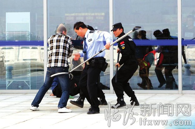 10月6日,临汾铁路公安处、临汾市尧都区公安局、临汾市武警支队、临汾市站前派出所、交警五中队、临汾市人民医院、侯马车务段等部门和单位,联合在临汾西站组织开展了反恐处突演练。