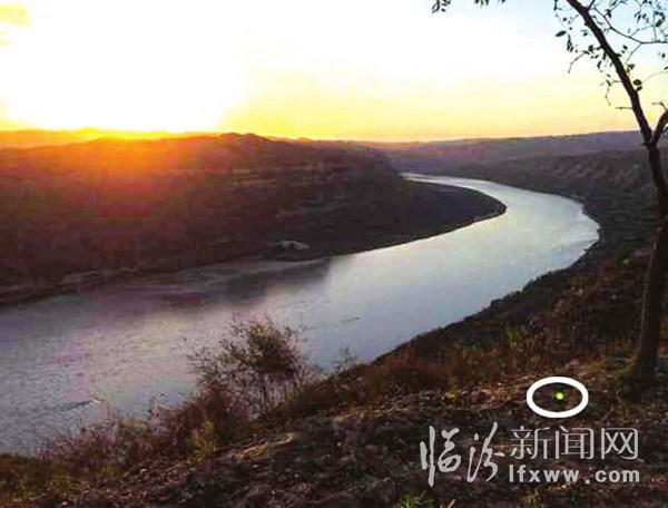 假日期间,记者与友人游览位于永和打石腰乡黄河时,在翻看手机拍摄的照片中发现有一绿色发光点。前去寻找,却什么也没有发现,在场的人都感到惊奇。太阳光分赤、橙、黄、绿、青、蓝、紫,没有反射物,却能拍出神奇的光,乾坤湾太神奇了。