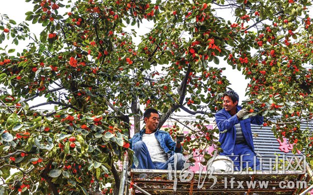 金秋十月,花果城里瓜果飘香,红彤彤的柿子挂满了枝头。10月11日,临汾市城市绿化队工作人员开始对我市的鼓楼东大街、洪家楼北街等几条街道的柿子树进行采摘,并发放给市民。 记者 张蕴强 摄