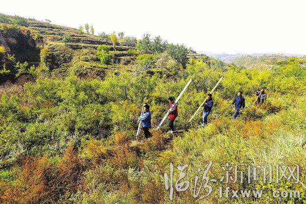 10月15日8时,成虎生和他的测绘队员们从浮山县城准时出发,经过一个多小时的长途跋涉,来到了古县郭店乡五十亩垣村。背着沉重的测绘仪器,徒步走在羊肠小道,一边开辟山路一边攀爬近60度的山坡,如果不借助于杂草树枝很难保持身体的平衡。虽然测绘的直线距离仅有20公里,但往往测量一次要走40公里,加上往返就是80公里。