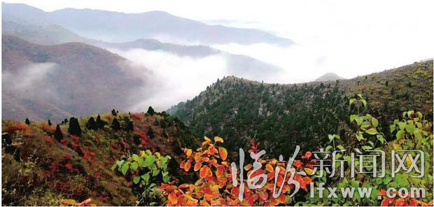 时至深秋,吉县管头山上的红叶姹紫嫣红、竞相争艳,雨后云海弥漫在五彩斑斓的山林,形成红叶映云海的独特景观,煞是诱人。