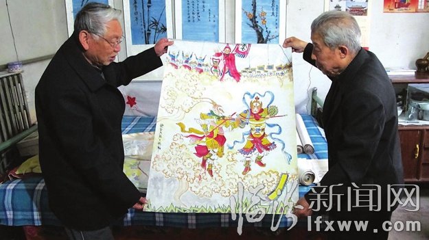 翼城县退休老干部张颖(右)今年74岁。1996年退休后,他开始师从郑怀宝学习工笔画。