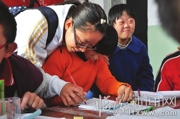 欢声笑语在教室内环绕,每个人的脸上都带着笑容。(文/图记者 郝海军 潘华玲)