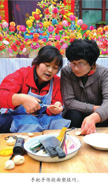 近日,在尧都区体育街席家胡同太平花馍店里,惟妙惟肖的各式花馍吸引了市民的眼球。我省非物质文化遗产“太平面塑”传承人梁秋叶的面塑作品展在这里举行,同时,梁秋叶还开展了为期10天的花馍制作培训,为尧都区热爱花馍艺术的人们手把手、一对一的传授经验和技巧。 此次展览和花馍制作工艺培训,旨在为热爱花馍艺术的人们搭建一个交流平台,让“太平面塑”这一民间传统工艺更好地传承和发扬,使非物质文化项目得到保护和继承。 本报记者 闫锐鹏 摄影报道