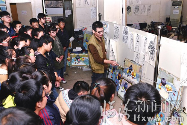 近日,在市区艺通美术培训机构,老师在辅导学生做范画。随着一年一度艺考的到来,我市各大培训机构结合实际情况,制订了科学详细的应考方案,迎接考试的到来。