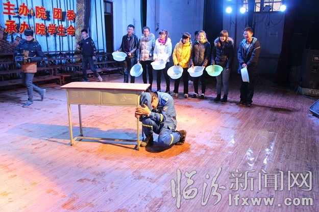 12月11日,在山西管理职业学院,我市蓝天救援队的队员在指导学生进行防范逃生演习。当天,该学院联合市地震局、公安局及蓝天救援队为全校师生举行了一场生动的安全教育课,通过实地疏散演练、地震避险逃生等实用型自救项目,加强师生安全责任意识,共建和谐平安校园。 闫锐鹏 孙国芳 摄