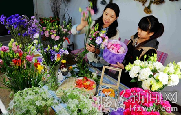 2月8日,在我市韩式花社,花艺师韩淑霞在为顾客制作情人节“私人定制”的鲜花礼盒。随着人们消费理念的转变,许多花店摆脱传统的花束包装方式,以顾客的性格、爱好等特点制作的简单大方,富有“花语”气息的“私人定制”鲜花受到顾客的欢迎。 记者 闫锐鹏 摄