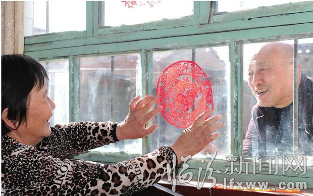 近年来,该县纪委将剪纸文化与廉政教育相结合,推出一系列廉政主题剪纸赠送给党员干部,通过传统文化推行反腐倡廉。图为春节期间,浮山县天坛镇林业站长贾培章和妻子李红梅在张贴廉政窗花。记者 李虎威 摄